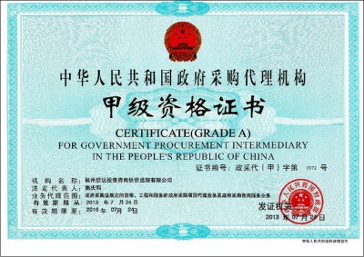 政府采購甲級資格證書