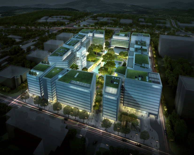 本項目位于杭州市西湖區天目山路398號,文新單元FG02-C2/C65-08地塊。包括4幢9~11層的綜合樓A#、B#、C#、D#,1幢9層的藝術中心E#樓和3層地下室。