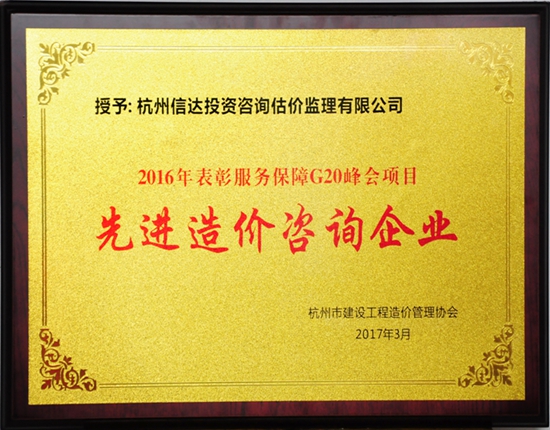 2016年表彰服務保障G20峰會項目先進造價咨詢企業