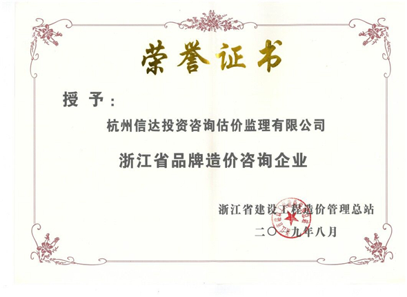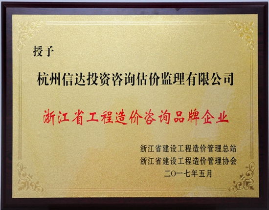 2017年5月被評為浙江省工程造價咨詢品牌企業