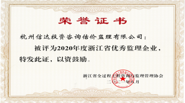 喜訊!杭州信達投資咨詢估價監理有限公司榮獲2020年度浙江省優秀監理企業的榮譽稱號?