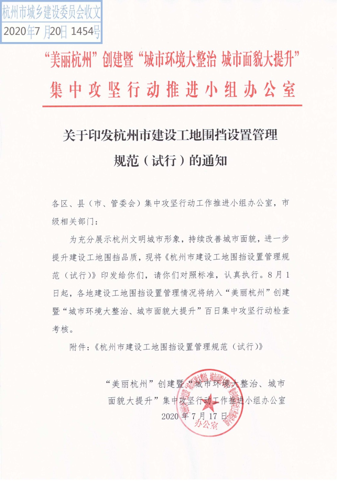 關于印發杭州市建設工地圍擋設置管理規范(試行)的通知